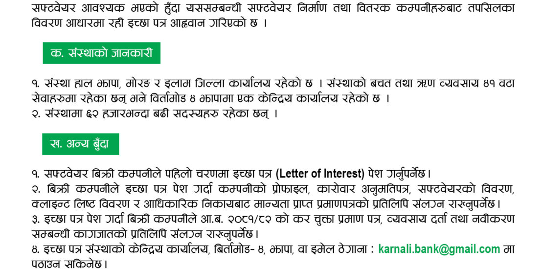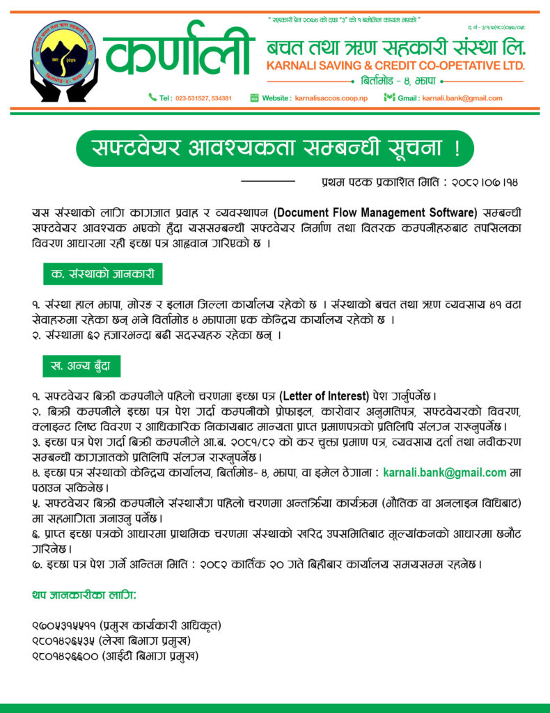 सफ्टवेयर आवश्यकता परेकाले सम्बन्धित सफ्टवेयर प्रदायक तथा वितरकले इच्छा पत्र पेश गर्ने सम्बन्धी सूचना